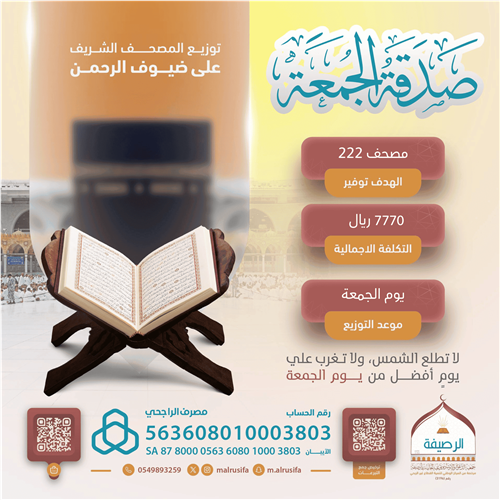 🔄 شارك الخير مع من حولك لتضاعف الأجر. كل حرف يُتلى من المصحف الذي تهديه، هو أجر لا ينقطع لك بإذن الله